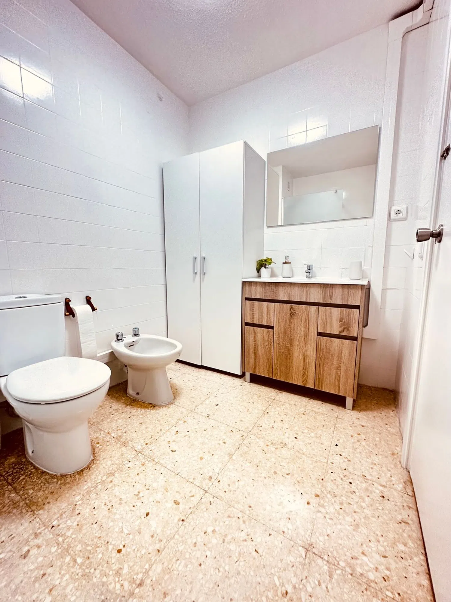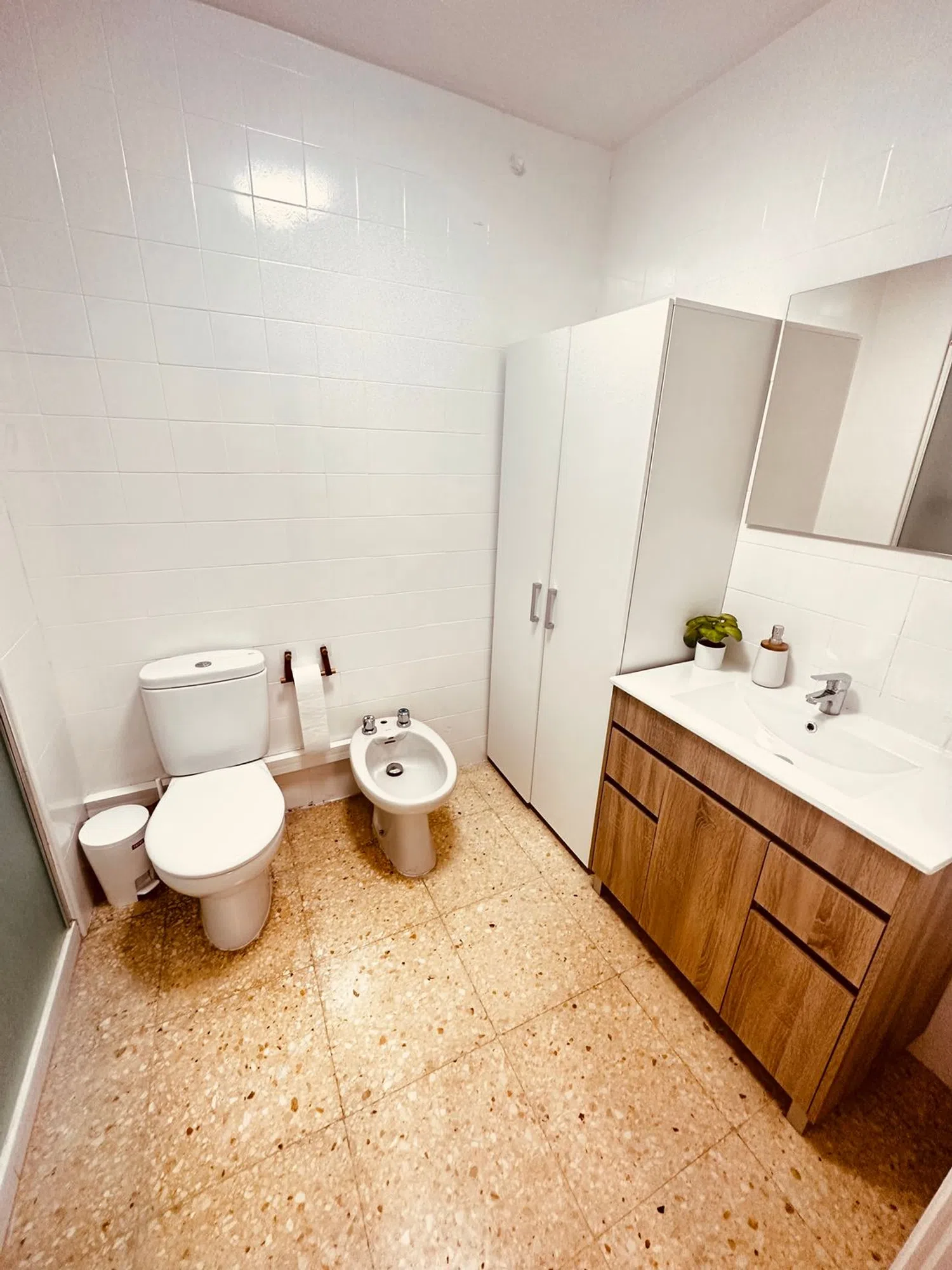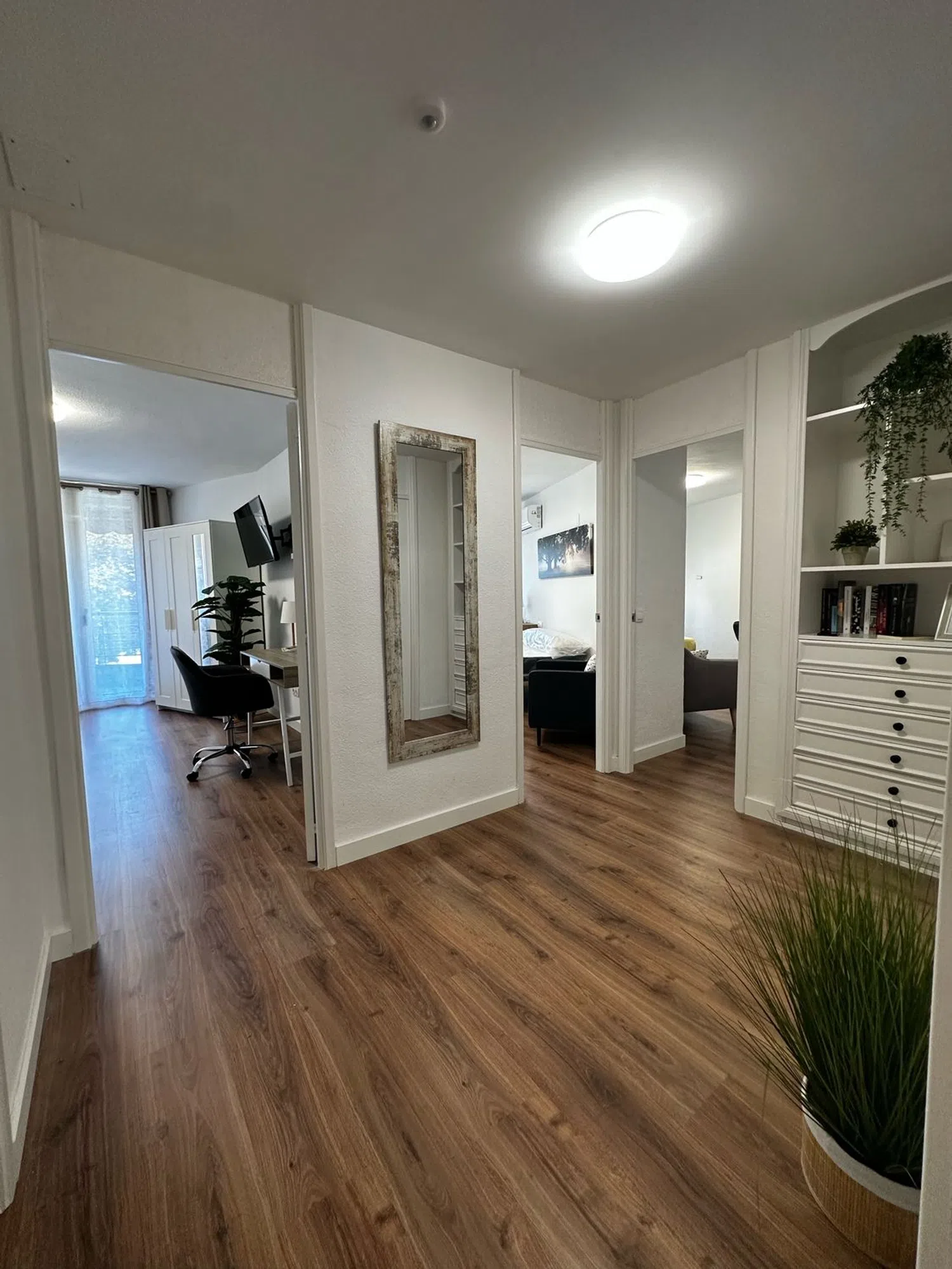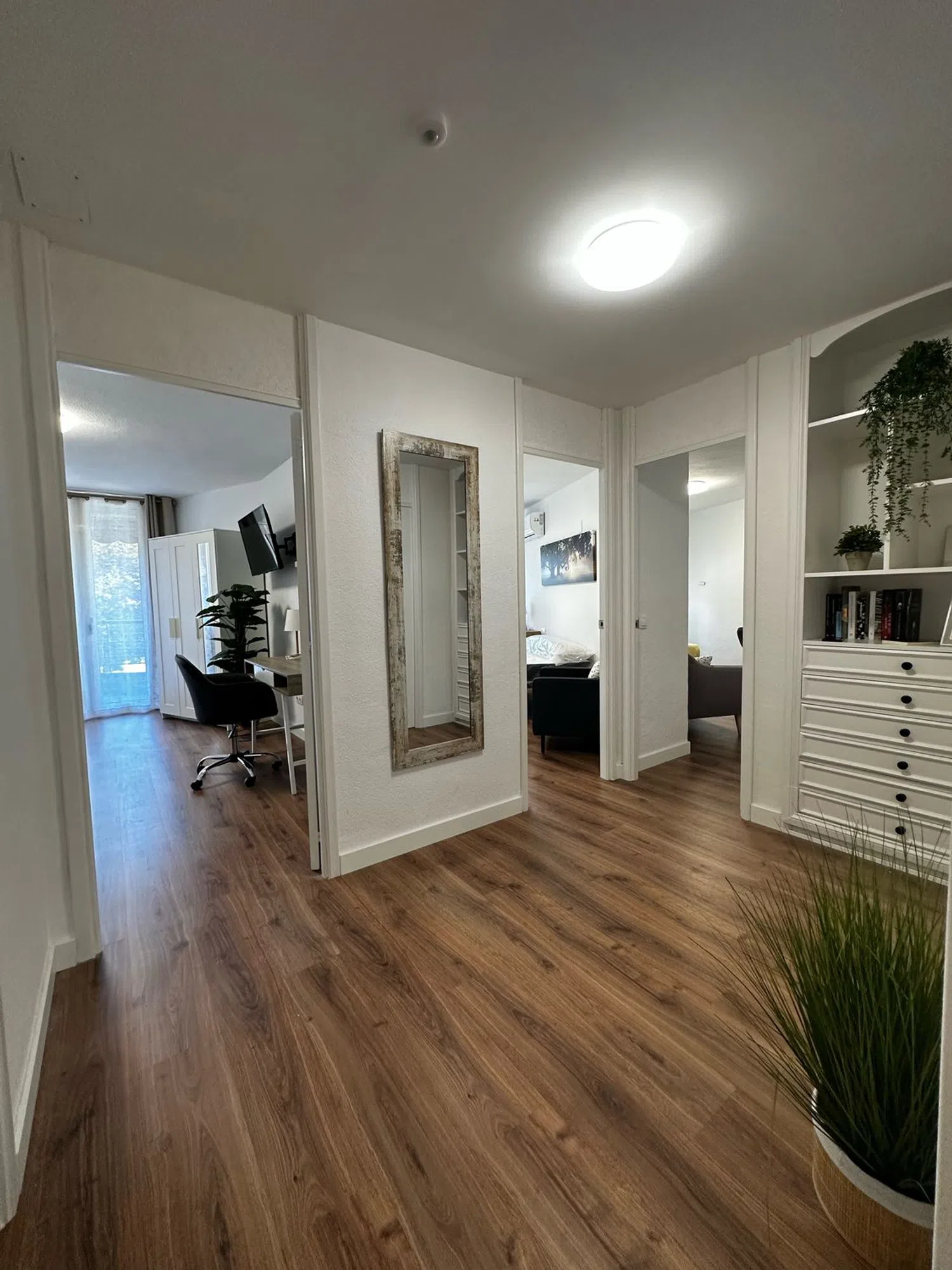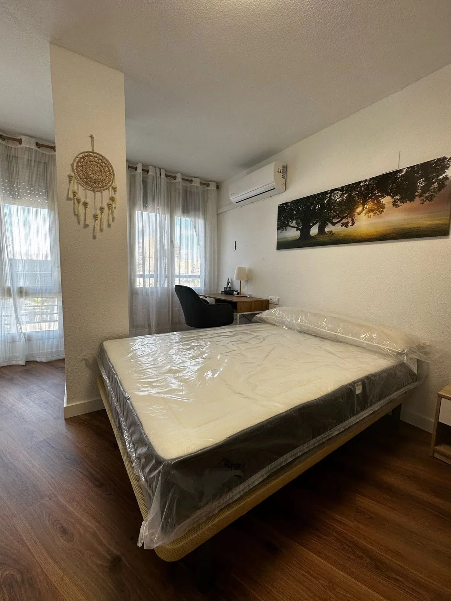 Se ofrece en alquiler un espacioso apartamento en la segunda planta, accesible mediante ascensor, situado frente a la estación de tren. La vivienda cuenta con cinco dormitorios, una cocina integrada con comedor, dos baños completos y un aseo adicional. Existe la flexibilidad de transformar una de las habitaciones en sala de estar, resultando en cuatro dormitorios. La propiedad, recientemente renovada, puede ser arrendada con o sin mobiliario. Cada dormitorio está equipado con cama, mesita de noche, escritorio, silla, armario, televisor de 40 pulgadas y cerradura individual. La cocina dispone de dos neveras, horno, lavavajillas, microondas y vitrocerámica. Se requiere demostrar estabilidad financiera mediante contrato laboral. El contrato de alquiler tiene una duración mínima de un año. Su ubicación es excelente, cerca de la estación de tren, supermercados, El Corte Inglés y otros servicios esenciales. Estará disponible para ocupación en noviembre o diciembre, ideal para quienes buscan una vivienda amplia en el corazón de Alicante.