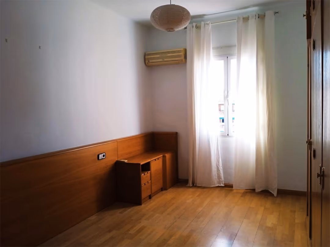 Se ofrece en alquiler un apartamento luminoso y tranquilo en una ubicación privilegiada de Madrid, entre los bulevares de Ibiza y Sainz de Baranda, a poca distancia del Parque del Retiro. La zona cuenta con una amplia oferta de servicios, comercios y restaurantes, así como excelentes conexiones de transporte público (metros Ibiza y Sainz de Baranda, varias líneas de autobús) y proximidad a hospitales. El edificio dispone de portero físico y acceso adaptado con rampa y ascensor. La vivienda, situada en una sexta planta con vistas a un patio de manzana, garantiza abundante luz natural y ausencia de ruidos. Consta de dos dormitorios con amplios armarios empotrados, un salón espacioso con aire acondicionado (presente también en el dormitorio principal) y una cocina totalmente equipada con barra para comer. Se alquila sin amueblar para estancias de larga duración, requiriéndose solvencia laboral demostrable.